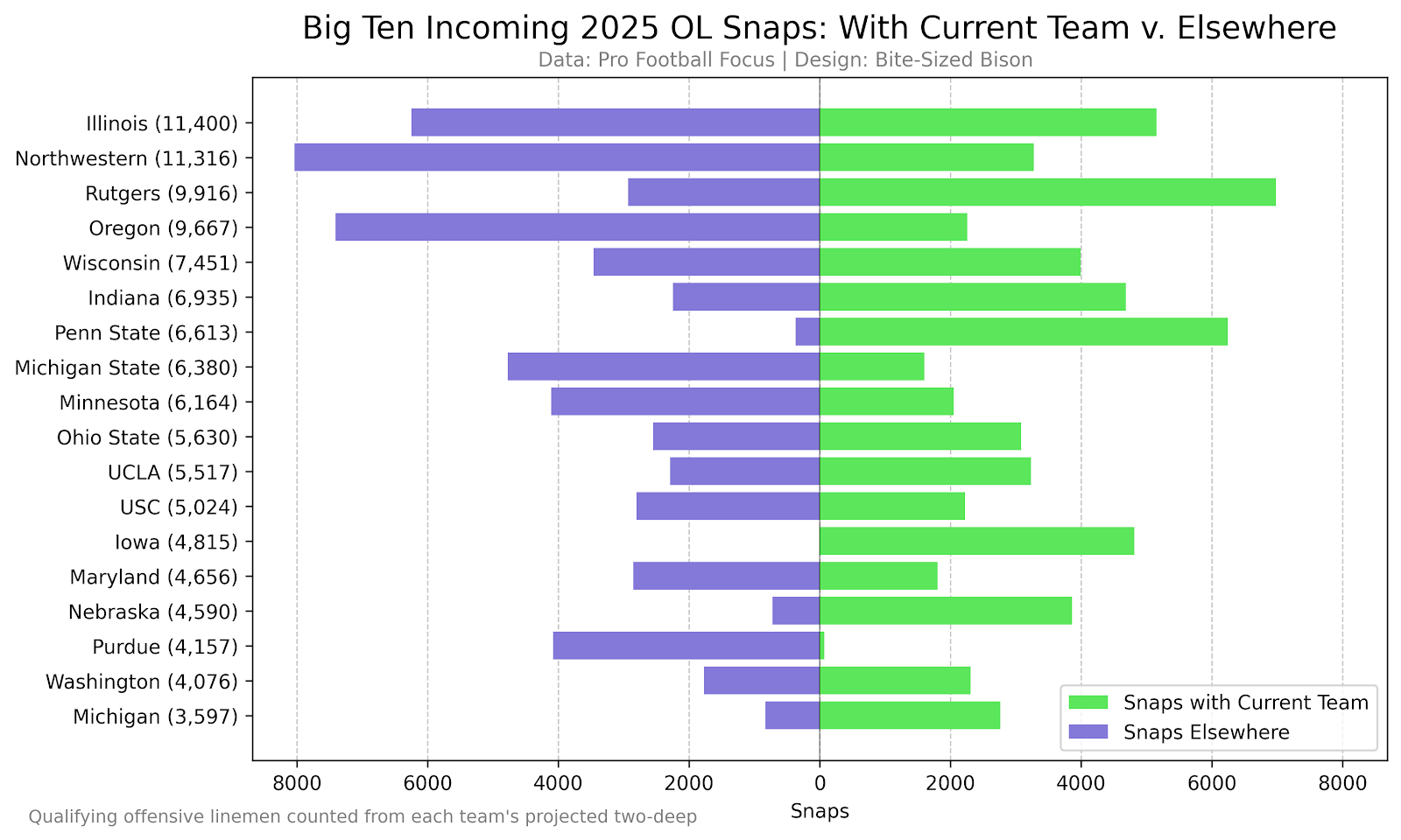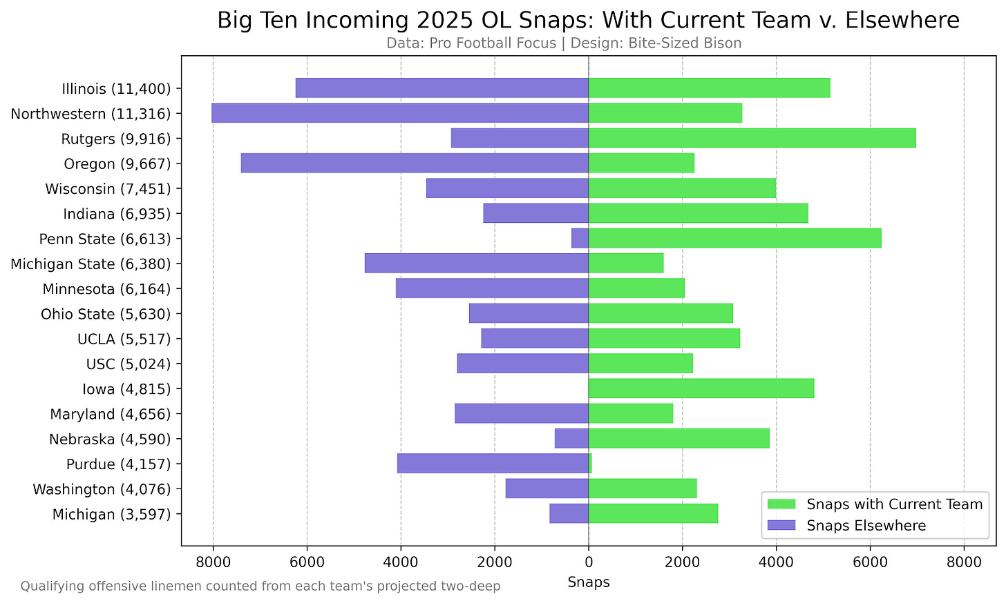 If snaps equaled the quality of an offensive line, we could just assume that Illinois, Northwestern, Rutgers, and Oregon will fill the top tier of offensive lines in 2025, but not all snaps are synonymous.