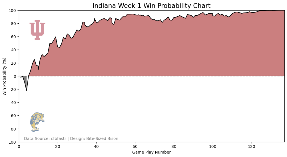 The game began with an Indiana three-and-out (as seen in the chart), but then the Hoosiers scored a touchdown on three straight drives and never looked back. One of my primary takeaways was how, even with some inconsistent play, the game never felt like it would slip from Indiana’s grasp, which hasn’t always been the case.