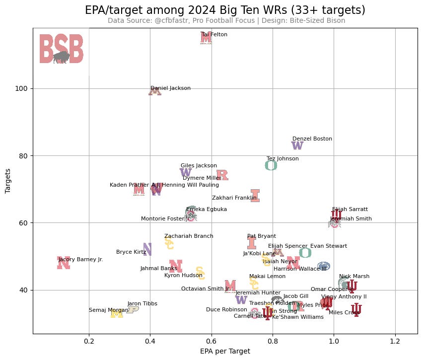 Big Ten WR EPA/target Chart & Indiana Pass-Catcher Comparison Chart