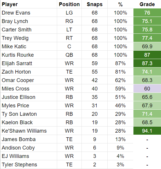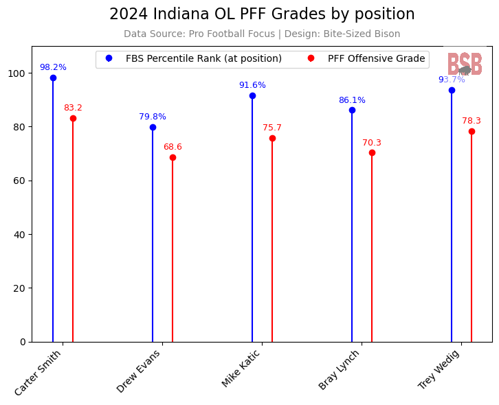 Indiana now owns the top average grade in the Big Ten among its starting OLs.
