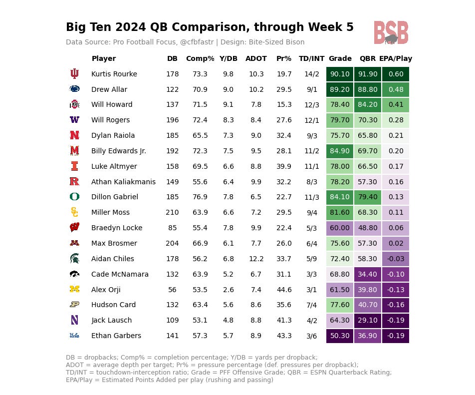 There is a tier of one at the top of this list, and it’s Kurtis Rourke. But Indiana plays two of the third-tier QBs (Will Rogers and Dylan Raiola) in the first two games after the bye.